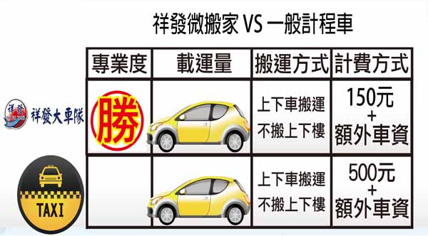 【祥發衛星聯合大車隊】推出「搬家小黃」服務使用可倒椅背、